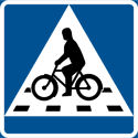 Här får du cykla över vägen. Du har skyldighet att väja för bilarna. Om det finns trafikljus ska du följa det.