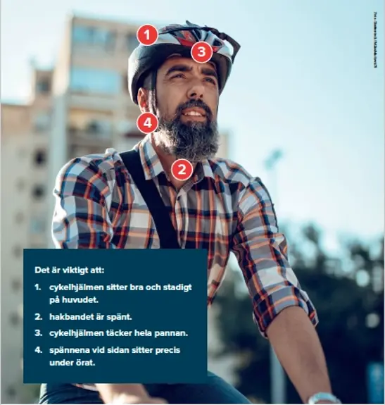 I Sverige är det lag på att alla barn under 15 år ska använda cykelhjälm. Det är lika viktigt för vuxna att använda hjälm.