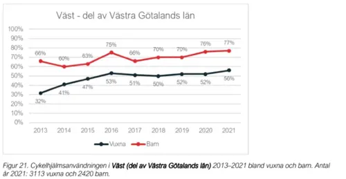Ökad cykelhjälmsanvändning i Väst